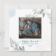 PixDezines vous remercie et Faire-part de naissance pour un bébé avec un feuillage d'aquarelle en Eucalyptus bleu poussiéreux, et bulles de champagne. Copyright © 2020 PixDezines™. Tous droits réservés.