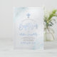 PixDezines Baptism, avec des palmiers argentés et des arrière - plans bleus irisés. Nous avons accentué la police de caractères moderne rose pâle.