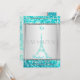 PixDezines tour Eiffel recouverte de faux paillettes bleu aqua et accentuée d'un cadre en faux argent. qui est amovible. L'étoile de David est également parsemée de faux paillettes. Flashy et pourtant classe.