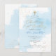Baptême et célébration du premier anniversaire de PixDezines, avec un thème aquarelle bleu bébé et une croix en faux or, saupoudré de poussière d'or et accentué d'une calligraphie de luxe. Tous les éléments sont modifiables.