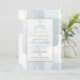 PixDezines Baptême et célébration de deuxième anniversaire, avec aquarelle bleu pâle poussiéreux et croix en faux or, saupoudré de poussière d'or accentué avec un script de calligraphie de luxe. Tous les éléments sont modifiables.