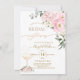 PixDezines Shower de Mariage, un verre à champagne (il existe également une couche de verre à champagne rose qui peut être rendue visible), des bulles de faux or et des bouquets aquarelles de roses roses et d'hydrangeas roses.