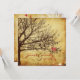 PixDezines faux parchemin vintage, inséparables rouges sur une branche et quelques feuilles d'érable au sol pour un mariage de automne.