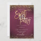 PixDezines Sweet 16 avec diamants cloutés, parties scintillant en faux or, arrière - plan chaud et sangria accentué avec bulles rose roux avec police de script amusant pour la fête du 16ème anniversaire.