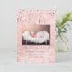 PixDezines Une étoile est née, cartes faire-part, avec l'or rose VÉRITABLE bokeh arrière - plan et des étoiles scintillantes pour accueillir votre nouvel ajout. Collage photo sur le côté inversé. Nous avons accentué avec un script manuscrit amusant et moderne. Idéal pour les annonces de naissance de bébé d'hiver. Copyright © 2017-2018 PixDezines™. Tous droits réservés.
