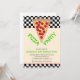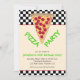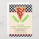Cette invitation à la fête de pizza comprend une pizza pepperoni et un arrière - plan en damier noir et blanc avec un texte vert vif. C'est une invitation parfaite pour un jeune garçon ou une fille qui célèbre son anniversaire avec des amis. Le texte est personnalisable.