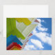 Photographie des Beach Huts aux couleurs vives en rouge, vert, orange, bleu et jaune contre un ciel bleu magnifique avec des nuages blancs passant sur la côte nord-est de l'Angleterre