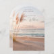 Une invitation à la douche nuptiale sophistiquée et moderne qui met en valeur une scène de plage paisible, où l'herbe délicate de la pampa coule dans la lumière chaude d'un coucher de soleil, créant une ambiance sereine et élégante.