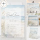 Célébrez votre douche nuptiale avec la simplicité et la tranquillité d'une scène de plage aquarelle. En utilisant le thème "quelque chose de bleu", les bleus doux de la mer et du ciel paisible et les neutres apaisants du sable une herbe de mer rendent ce design parfait pour votre mariage sur la plage ou à destination. On sent presque la brise de l'océan. Créé par Simply Farmhouse Press.