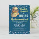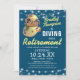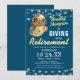 Cartes d'invitation pour une fête de retraite sur le thème de l'océan avec un fond bleu pouvant être changé en n'importe quelle couleur, un casque de plongée vintage, des guirlandes lumineuses et un modèle de célébration moderne facile à personnaliser.
