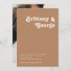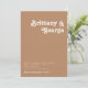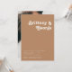 Cette invitation de photo décontractée marron avec monogramme est parfaite pour votre mariage d'été rétro simple, vintage, coloré, tropical et bohème. Sa police unique de style bohème du milieu du siècle donne à ce design une ambiance hippie groovy minimaliste classique. Supposons que vous cherchiez un design qui présente des couleurs océaniques côtières rustiques et vives pour votre mariage de destination créatif des années 70 sur la plage. Dans ce cas, ce produit et sa collection de mariage coordonnée sont ce que vous recherchez. N'hésitez pas à changer la couleur et à ajouter vos propres illustrations, graphiques ou photos. Si vous avez des questions sur la conception de ce produit, n'hésitez pas à nous contacter !