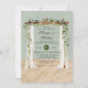 Design dispose d'une plage de couleur imprimée et d'éléments plus verts dans les tons vert tan et blanc superposant une couleur vert clair sable kraft textures papier avec dessus à baldaquin blanc et script de calligraphie ou écriture de type. Idéal pour vos célébrations mariages !