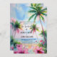 Fleurs tropicales, hibiscus, palmiers d'aquarelle, invitations au mariage hawaïen. Personnalisez-le avec vos détails.