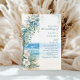 Invitation vos invités à une magnifique fête en bord de mer avec notre Modern Tropical Beach et Floral Arch Faire-part de mariage. Décoré d'une magnifique aquarelle peinte à la main, ce design élégant et contemporain offre une vue imprenable sur l'océan encadrée par une arche fleurie délicate. La composition asymétrique, avec seulement la moitié de l'arc visible, donne à cette invitation une atmosphère fraîche, jeune et moderne. Des fleurs bleues et blanches douces aux feuilles verdoyants rehaussent l'esthétique boho-chic, tandis que le texte est élégamment arrangé sur la droite pour un look élégant et sophistiqué. Contrairement à la version précédente, cette invitation présente un dos blanc immaculé, offrant un contraste propre et classique à l'aquarelle rêvée. Parfait pour les mariages tropicaux, les mariages de plage ou les mariages de destination, ce design allie beauté naturelle côtière et élégance moderne. Customisez le texte pour refléter votre journée spéciale et l'associer à la papeterie correspondante de notre collection Modern Tropical Beach pour une suite mariage cohésive.