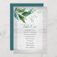 Conçu pour coordonner avec la gamme de papeterie de mariage en bois blanchi VG Invites, ce plan de table botanique rustique présente une gerbe de feuilles vertes aquarelles luxuriantes dans des nuances de verts et de bleus vifs sur le texte de votre choix. Le verso présente une couleur sarcelle complémentaire. Pour voir la papeterie de mariage bohème chic assortie, visitez Do Tell A Belle sur Zazzle.