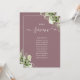 Ces numéros de table de mariage élégants avec feuilles de verdure botanique mauve peuvent être personnalisés avec votre plan de table de mariage dans une typographie chic. Les cartes sont imprimées au recto et au verso (double face). Conçu par Thisisnotme©