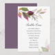 Conçu pour se coordonner avec la suite de verdure d'automne de VG Invites, ce plan de table botanique frais présente une gerbe de verdure aquarelle luxuriante dans des tons de bordeaux, prune, orange brûlé et verts sur votre texte souhaité. Le verso présente une couleur violette complémentaire. Pour voir la papeterie de mariage bohème chic assortie, visitez VG Invites sur Zazzle.