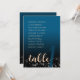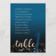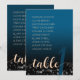 Ajoutez du style à votre réception de mariage avec ce plan de table simple mais élégant, qui permet aux invités de trouver leur table. Caractéristiques d'une écriture élégante et de lettres majuscules en pêche avec une pluie de confettis sur un bleu océanique étincelant évocateur de la Méditerranée sur fond noir. Personnalisez avec les noms des participants et le numéro de table.