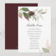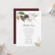 Conçu pour coordonner avec la gamme de papeterie de mariage marsala VG Invites, ce plan de table botanique rustique présente une gerbe de verdure luxuriante à l'aquarelle dans des tons de bordeaux et de vert sur le texte de votre choix. Le verso présente une couleur marsala complémentaire. Pour voir la papeterie de mariage bohème chic assortie, visitez VG Invites sur Zazzle.