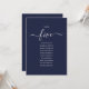 Ces élégantes cartes de plan de table recto-verso numéro 5 à l'écriture signature bleu marine sont parfaites pour toutes les célébrations. Conçues par Thisisnotme©