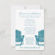 Conception de style moderne pour les chaises adirondack, itinéraire ou carte d'information pour compléter notre ensemble d'invitations de mariage sur le thème de la plage. Personnalisez le texte selon vos besoins.