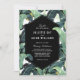 Des feuilles glamour de bananes ornent ce faire-part de mariage moderne. Un élément géométrique chic et un feuillage tropical luxuriant se prêtent à une décoration vraiment design. Entrez dans notre boutique pour coordonner les articles :