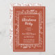 Invitation de fête de Noël moderne et élégante. Illustration de plantes, feuilles et baies dessinés à la main sur arrière - plan rouge terre cuite. Ajoutez votre texte.
