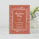 Invitation de fête de Noël moderne et élégante. Illustration décorative de plantes, feuilles et baies dessinées à la main sur fond rouge terracotta. Ajoutez votre texte.
