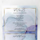 Éclaboussure éthérée d'encre alcoolique dans des nuances d'aqua saisissant, de violet pourpre et de lilas pâle - chaque section rehaussée d'un surlignage blanc transparent encadré d'or doré, au centre avant se trouve votre photo accentuée d'un double cadre doré et derrière le surlignage blanc transparent pour un attrait ésotérique un magnifique design abstrait moderne pour une invitation de mariage tout-en-un complète avec une réponse RSVP détachable pré-adressée pour le choix de repas pour que vos invités puissent facilement la renvoyer par courrier - une invitation de mariage tout-en-un époustouflante -