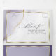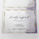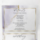 Aquarelle marbrée douce violet poussiéreux et or avec des reflets dorés clinquants - chaque section est mise en valeur par un encadrement superposé blanc doré transparent, au centre de la face avant se trouve votre photo accentuée d'un cadre doré et derrière la superposition blanche transparente pour un attrait ésotérique, un beau design abstrait moderne pour une invitation de mariage tout-en-un complète avec un choix de repas détachable pré-adressé et carte-réponse pour que vos invités puissent facilement la renvoyer par la poste - une invitation de mariage tout-en-un époustouflante -