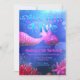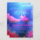 Cette invitation utilise le bleu et le rose comme palette principale de couleurs. La profondeur de la conception est prise en compte en donnant aux poissons l'air très loin du point de vue principal. Les effets d'éclairage sont utilisés spécialement dans la queue de sirène, pour en faire l'étoile de la conception
