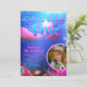 Cette invitation utilise le bleu et le rose comme palette de couleurs principale. La profondeur dans le design est prise en compte en faisant apparaître les poissons très éloignés du point de vue principal. Les effets d'éclairage sont utilisés en particulier dans la queue de sirène, pour en faire la star du design