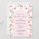 Invitation élégante et romantique pour une Baby Shower rose et blanche avec des fleurs de cerisier aquarellées entourant un cadre en arche.