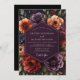 Rich plum and deep magenta florals bloom vibrantly against a dark, moody background. Hints of burnt orange and amber add warmth to this lush, opulent floral arrangement, evoking a sense of deep romanticism.