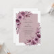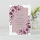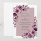 This design features a moody and romantic aesthetic with deep plum and soft mauve watercolor florals. Large blossoms resembling anemones and roses are clustered along the edges, accented by cascading leaf sprigs. The palette blends rich tones with a delicate dusty rose backdrop for a sophisticated look.