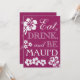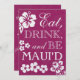 Cette invitation de mariage à destination d'Hawaï dit "Mange, Bois et Sois Maui'd" sur le devant. C'est une interprétation du populaire "Mange, Bois et sois marié". Ce design hawaïen présente un arrière - plan violet de prune avec une filigrane tropicale fleurie. Des hibiscus blancs et des fleurs tropicales de plage mettent l'accent sur le libellé. Le fond offre beaucoup d'espace pour vos détails mariages. Si vous avez besoin d'aide pour la personnalisation ou si vous voulez un jeu de couleurs que vous ne voyez pas dans ma boutique, envoyez-moi un message avec votre demande.