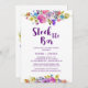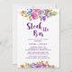 Cette invitation à la douche en prune stock le bar couples est parfaite pour une wedding shower à thème fleuri. Le design est composé de magenta clair, rose, prune, violet et fleurs bleues, et d'une belle police de caractères gras.