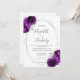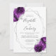 Invitation Plum violet Argent Floral Blanc QR Code Mariage
