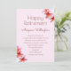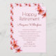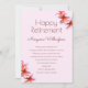 Pink plumeria fleurit l'invitation à la retraite pour une femme. Papeterie rose pâle avec des fleurs de plumeria rose réaliste dans les coins en haut et en bas. Imprimé "Bonne retraite" en haut avec son nom en-dessous. Tous les renseignements sur les parties sont ajoutés dans un paragraphe. La couleur du texte est très rose-rouge foncé. Reverse a un motif de fleurs frangipaniennes. Mettez à niveau le type de papier et choisissez une forme comme vous le souhaitez.