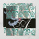INVITATION PLUMES DE DIAMANT BLANC BLEU SOIE DAMASSÉE MONOGRA