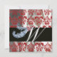 INVITATION PLUMES DE DIAMANT SOIE DAMASSÉE ROUGE ARGENTÉ MONO