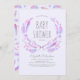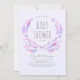 Bois rustique et lavande violet aquarelles baby shower invitation avec fleurs, plumes et bois de cerfs.