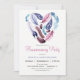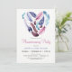 Jolie boho chic soirée de réveil invitation. Caractéristiques rose, violet violet et plumes bleues en forme de coeur sur l'avant et en motif personnalisé sur le dos.