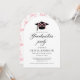 Célébrez votre réussite en style et en sophistication grâce à cette invitation à la graduation moderne en forme d'arc, avec un arc rose chic, une casquette de graduation élégante et une typographie élégante. Parfait pour une fête de graduation branchée et élégante, ce modèle modifiable est facile à personnaliser pour l'impression ou le partage numérique. Une façon intemporelle et élégante pour les clients invitations à votre étape spéciale! 💕 🥂
