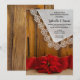 Invitez vos invités à célébrer les jeunes mariés le matin après leur cérémonie de mariage hivernal avec la charmante invitation de brunch de mariage d'hiver Rustique Rouge Poinsettia. Cette invitation personnalisée élégante et décontractée pour un déjeuner ou un petit déjeuner après le mariage sur le thème de la ferme ou du ranch de décembre présente une photographie florale d'une fleur de poinsettia rouge, un ruban de burlap rouge et un mouchoir en lin uni blanc vintage avec une bordure de dentelle et un fond en bois de grange brun rustique. Inspiration parfaite pour une célébration décontractée de fête de grange.
