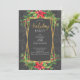 Impressionnez vos invités avec ces invitations glamour de Fêtes! Cet invitation présente de riches tonalités contrastées de rouge festif, d'or flashy et de gris riche. Holly et poinsettias se distinguent par l'élégance du lettrage or et blanc sur un arrière - plan gris foncé. Un cadre géométrique doré apporte une touche moderne à ce design de Noël classique. Le dos est orné d'un arrière - plan rouge au feuillage doré délicat. Avec cette magnifique invitation, votre fête sera un succès !