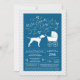 Inclure le grand frère ou la petite soeur en fourrure dans la fête avec cet adorable baby shower Pointer chien design! Parfait pour un amoureux du chiot avec un bébé en route. Le Pointeur est à côté d'un adorable chariot vintage. Le bleu est parfait pour un bébé en route !