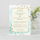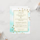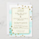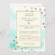 Fond d'aquarelle bleu aqua moderne et festif, encadré d'or et accentué de points de confetti d'or imprimé design faire-part de mariage formel.