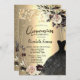Invitation Points Confetti Or, Roses, Robe Noire Cadre