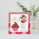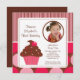 Commencez votre partie outre de la droite avec notre invitation mignonne d'anniversaire de photo de petit gâteau comportant un petit gâteau doux avec une cerise énorme réglée sur un arrière - plan rose et brun de point de polka. Perfectionnez pour une fête d'anniversaire du jour de valentine ! Grand invitation d'anniversaire de photo pour une ?ère invitation de fête d'anniversaire ou tout anniversaire de petites filles. Personnalisez juste avec votre information, ajoutent votre photo et vous êtes tous placez pour aller ! Articles assortis comprenant des timbres-poste d'anniversaire, autocollants de faveur, merci vous carde et remercie que les autocollants sont également disponibles dans notre magasin. studio ©Stockberry